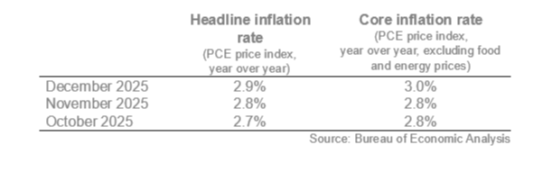 - Higher inflation in December. Last week, we learned that inflation accelerated in December. The personal consumption expenditures (PCE) price index, which is the Federal Reserve (Fed)’s preferred inflation measure, was delayed due to the government shutdown.